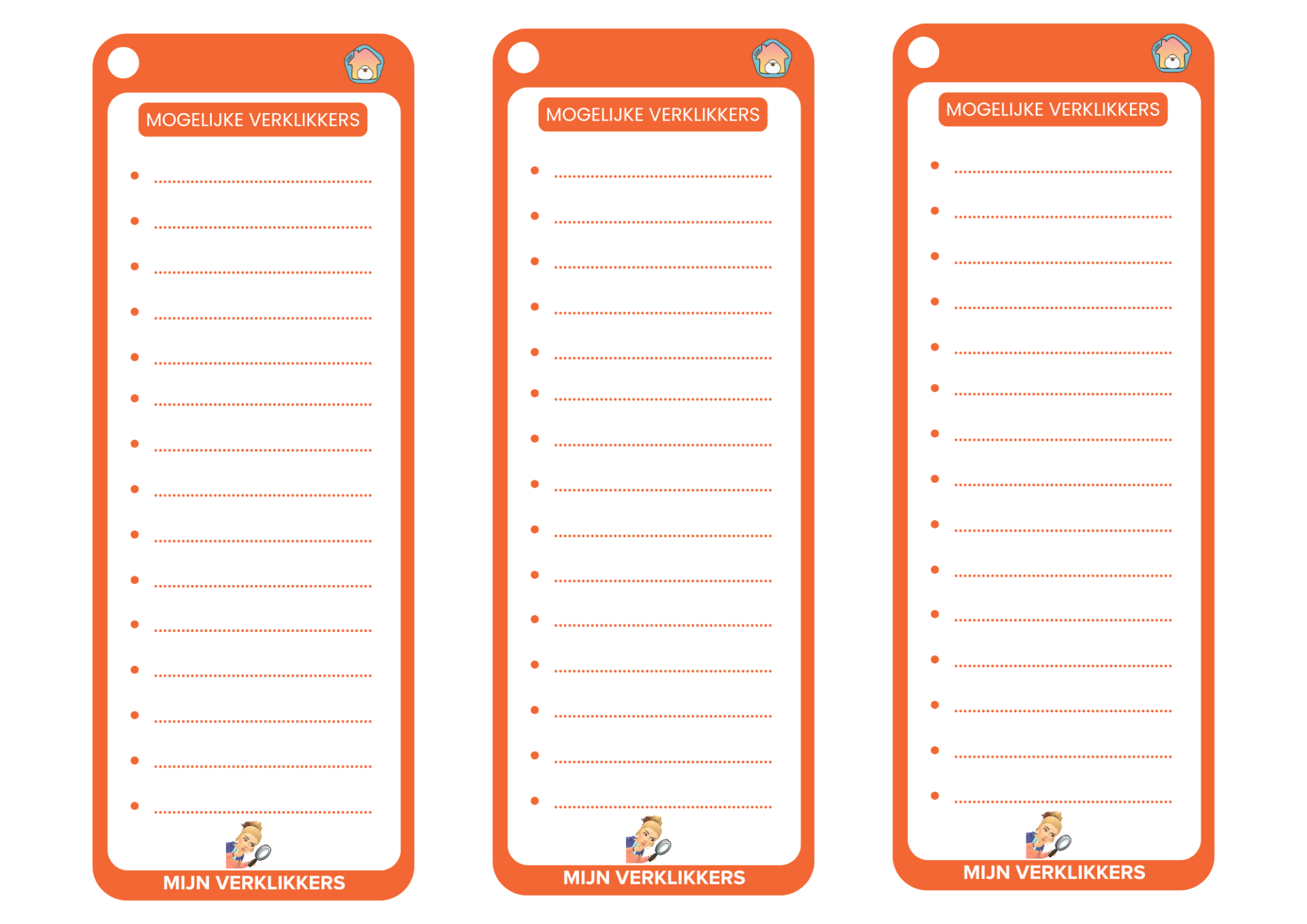 Naast een ingevuld exemplaar - als voorbeeld - zitten er per signaalkaart ook drie lege kaarten bij. Hierop kan je jouw belangrijkste emoties en verklikkers noteren.