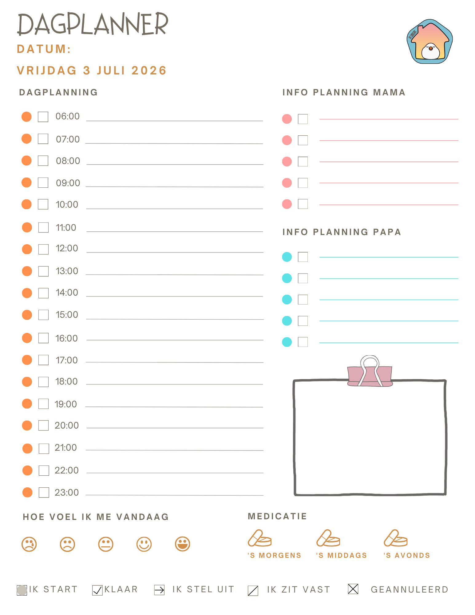 Op de dagplanner kan er ook kort een overzicht gemaakt worden van wat de ouders die dag omhanden hebben.