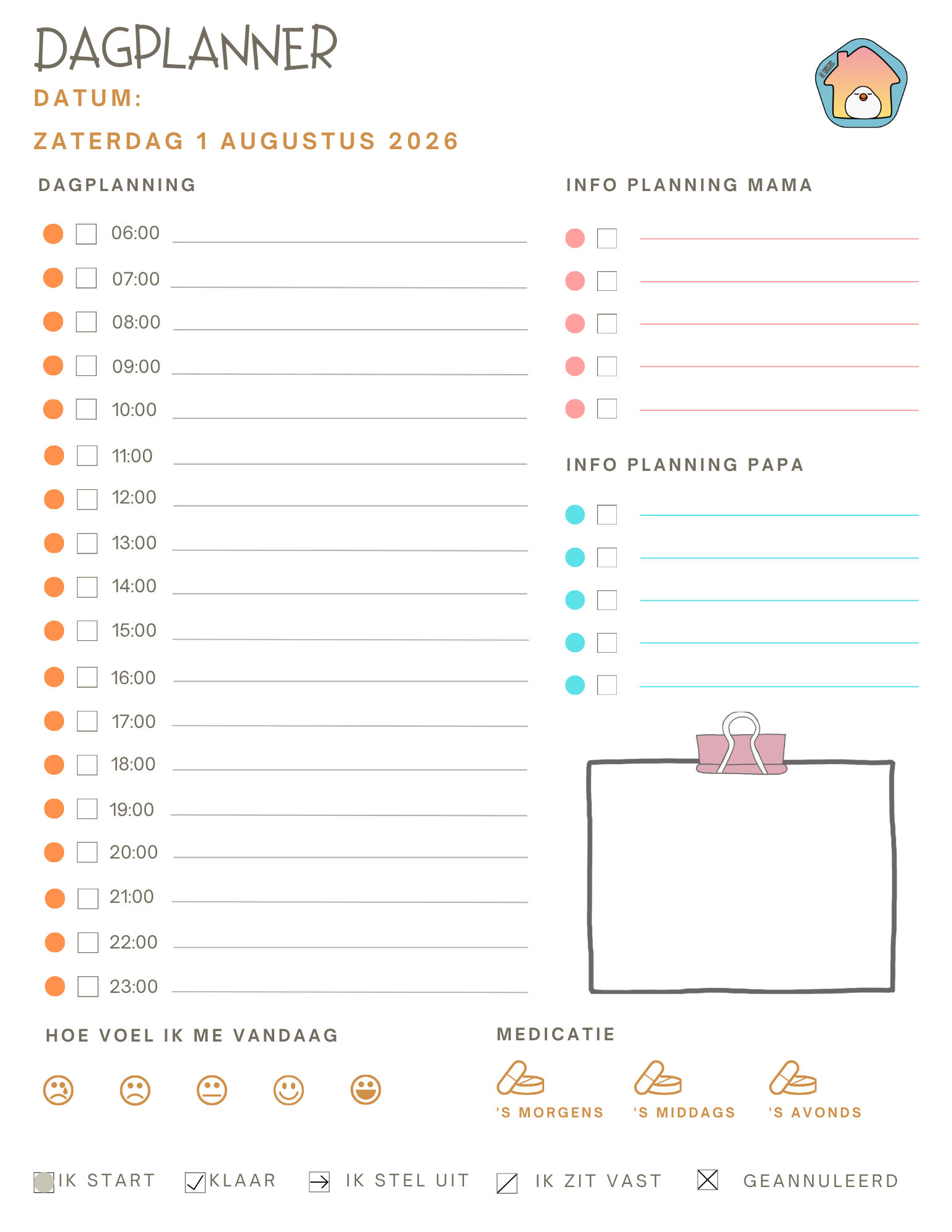 Op de dagplanner kan er ook kort een overzicht gemaakt worden van wat de ouders die dag omhanden hebben.